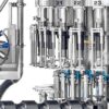 FEATURES OF THE DEAREARATION SYSTEM: The rotary deaeration station through a special vacuum pump eliminates the air from the bottle. Subsequently, the bottle is filled with inert gas before the latter leaves the deaeration station. This system is very important as it reduces the oxidation phenomenon to a minimum. The gas that is inside the bottle is released in the product containment tank during the filling phase.