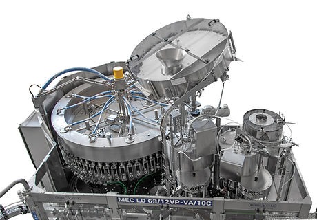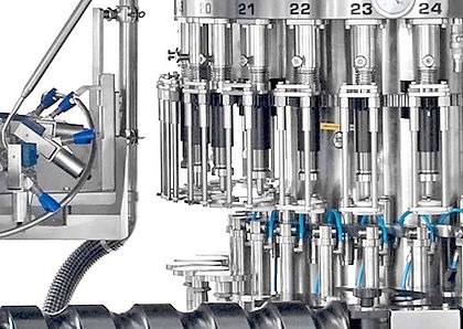 Automatic rotary system to fill flat and low density liquids. The opening of the filling valve is actuated by its contact with the neck-finish of the container raised by the supporting cylinder. The range of configurations and options allow great flexibility of use.
