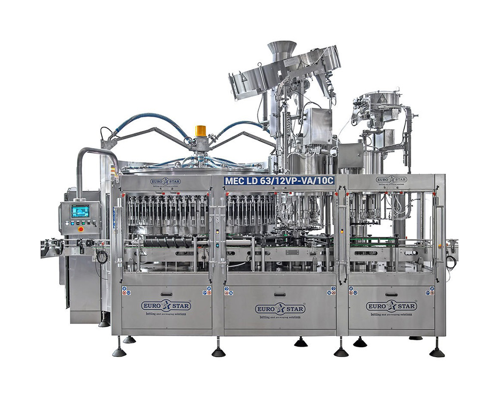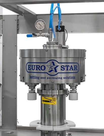 FEATURES OF THE LEVELING SYSTEM: The rotary leveling station levels the bottles at the filler outlet through the injection of neutral gas. The excess liquid returns to a separate tank or to the product containment tank. The gas blanket located in the neck of the bottle with the cork inserted minimizes the phenomenon of oxidation.