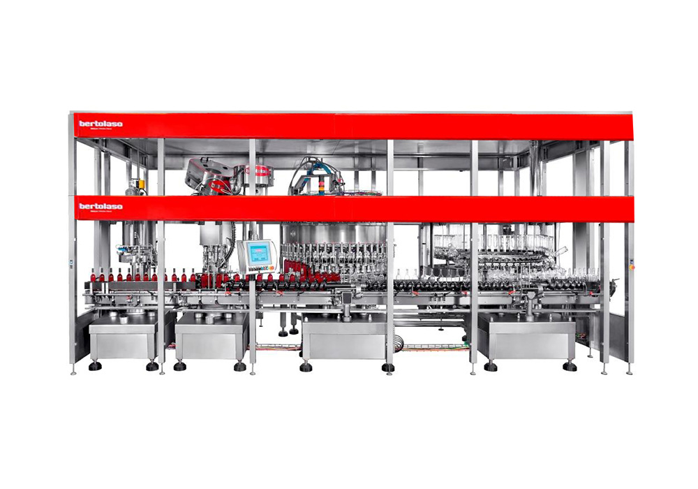 Unibloc for rinsing, filling and double closing (cork and/or screw cap) for still wines without the presence of oxygen. The unit can reach a speed up to 10.000 bph with 750 ml bottles.